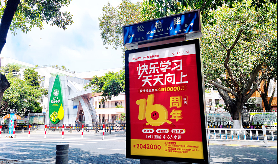 介紹:快樂學習全城多個黃金路段投放,覆蓋廈門各大中小學周邊路段及交叉口,定位精準人群,點對點投放。