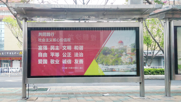 一般情況下,候車亭廣告使用單一的顏色作背景,文字采用與背景顏色反差較大的色彩,這樣既能襯托主體,又能令遠(yuǎn)處的人可以清楚地看到。